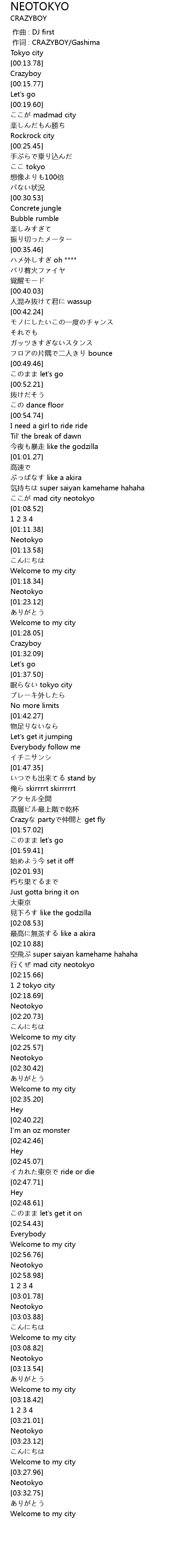 | [02:14.16] | 行くぜ mad city neotokyo |