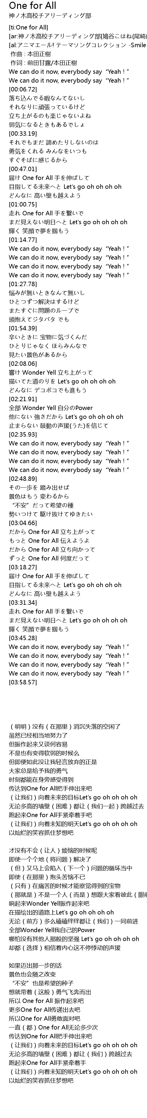 | [01:00.92] | 走れ One for All 手を繋いで |