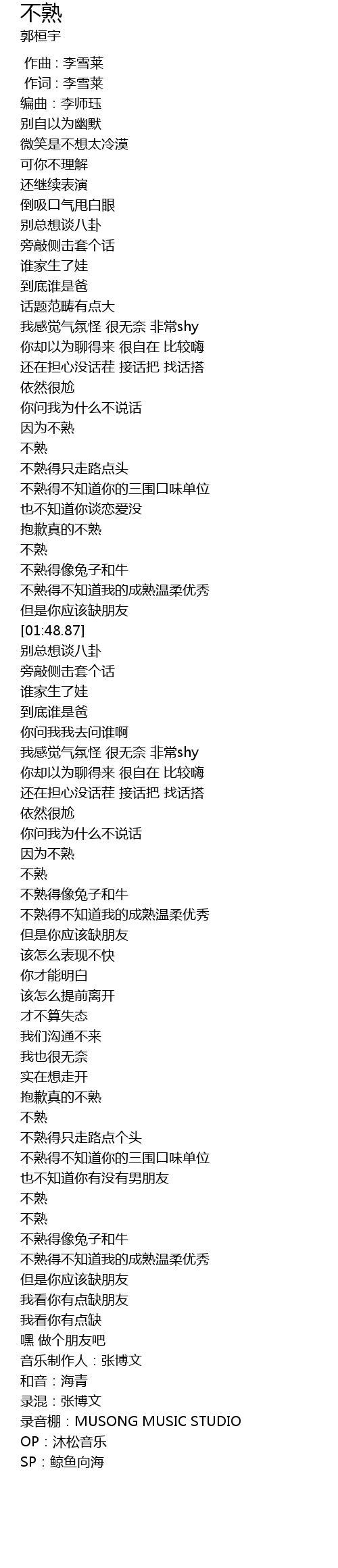 | [01:38.02] | 不熟得不知道我的成熟温柔优秀 |