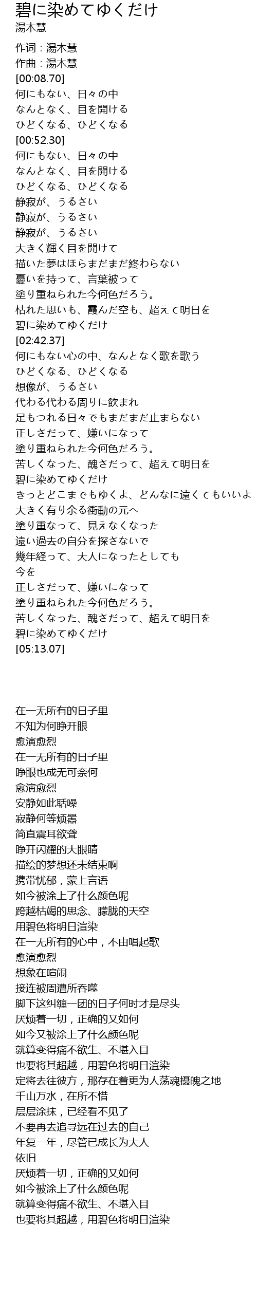 | [04:53.85] | 苦しくなった、醜さだって、超えて明日を |