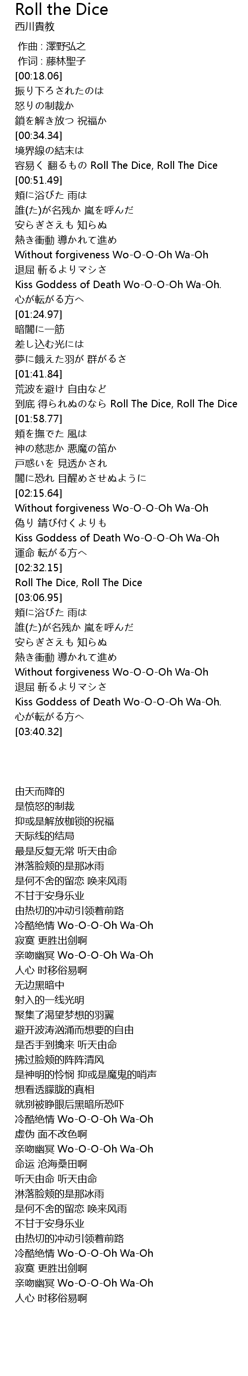| [00:43.87] | 容易く 翻るもの Roll The Dice, Roll The Dice |