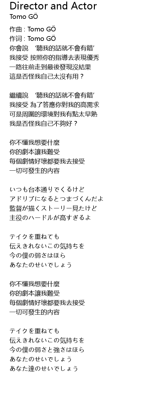 | 作词 : Tomo GÖ | |