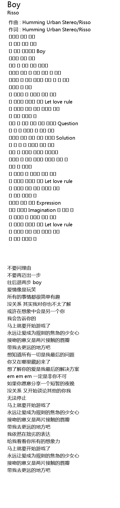 | [00:01.000] | 作词 : Humming Urban Stereo/Risso |