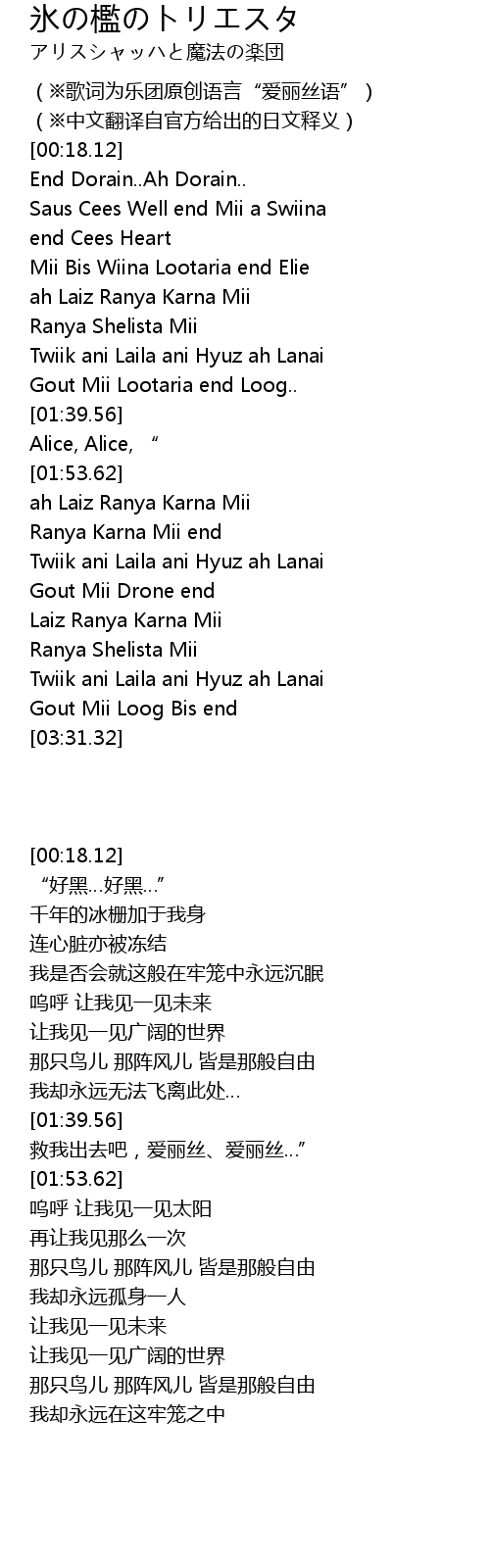 | [00:07.29] | (※歌词为乐团原创语言“爱丽丝语”) |
