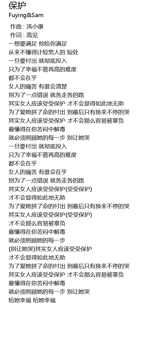 | [02:58.70] | 其实女人应该受受保护(受受保护) 才不会显得如此地无助 |