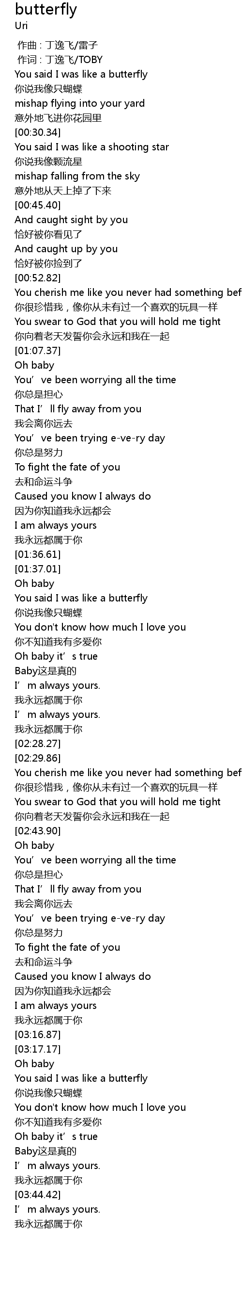 | [01:41.09] | 你说我像只蝴蝶 |
