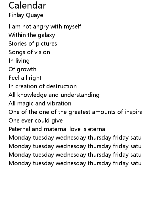 Monday tuesday wednesday thursday friday saturday sunday |