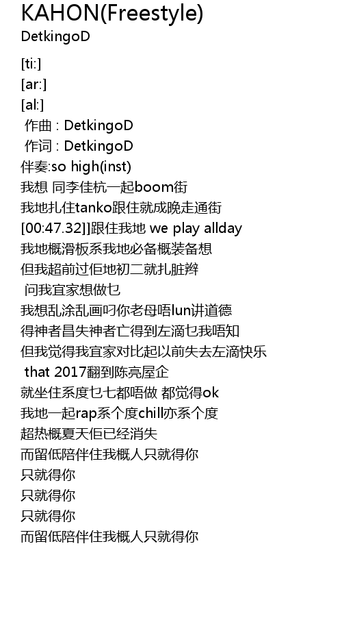 | [00:47.32]] | gēn zhù wǒ dì we play allday |