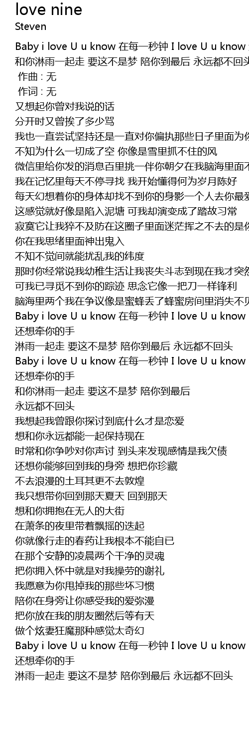 | Baby i love U u know zài měi yī miǎo zhōng I love U u know hái xiǎng qiān nǐ de shǒu | |