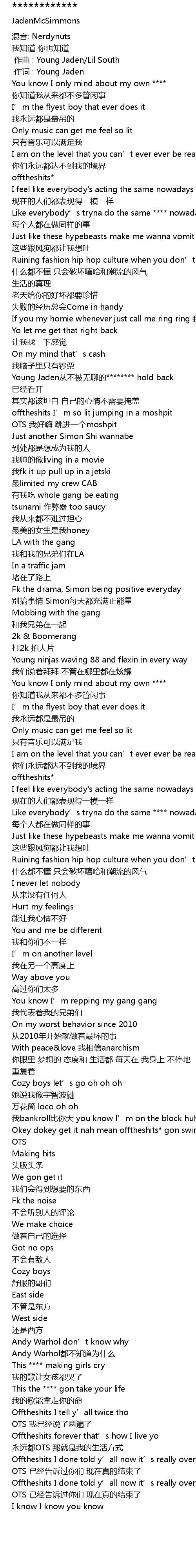| [01:06.679] | Young Jaden从不被无聊的******** hold back |