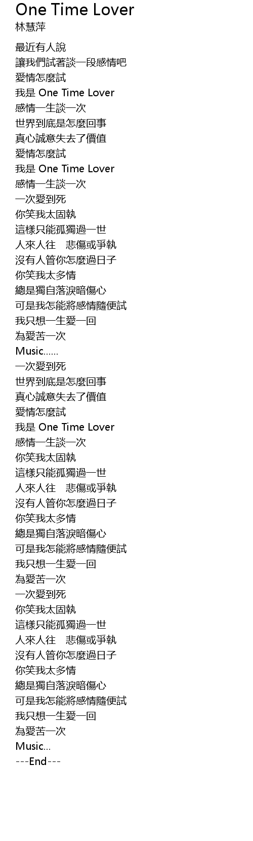 | [03:38.82] | 總是獨自落淚暗傷心 |