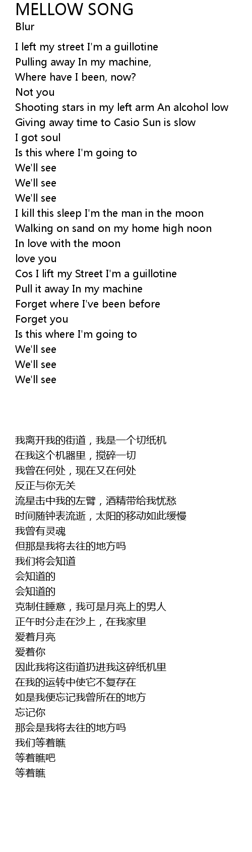 | [00:13.70] | I left my street I'm a guillotine |
