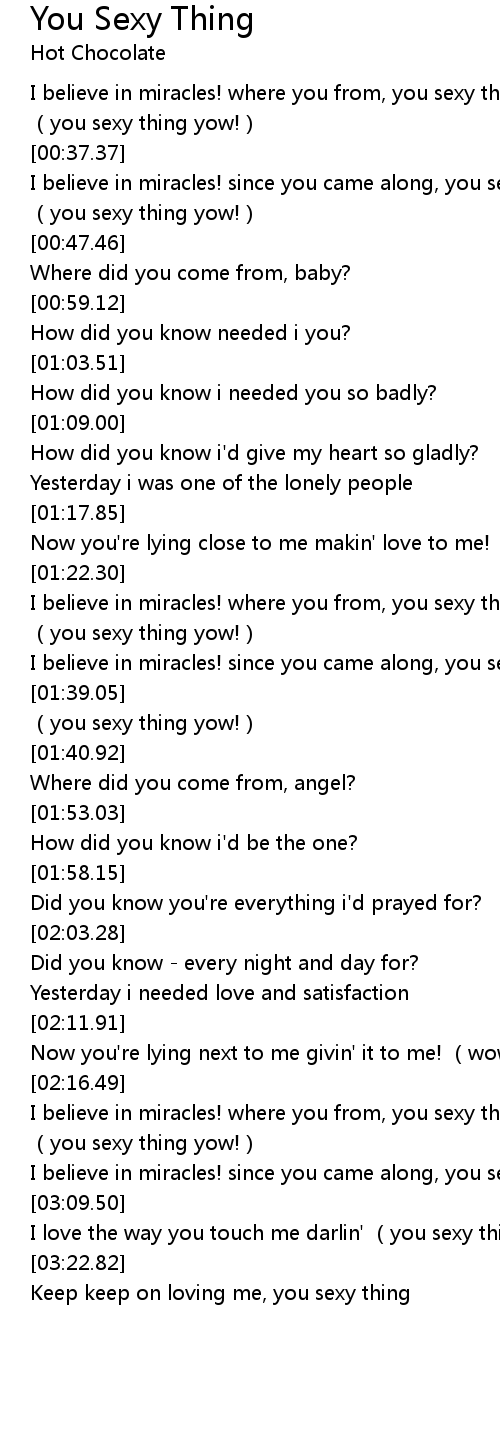 | [00:38.12] | I believe in miracles! since you came along, you sexy thing? |