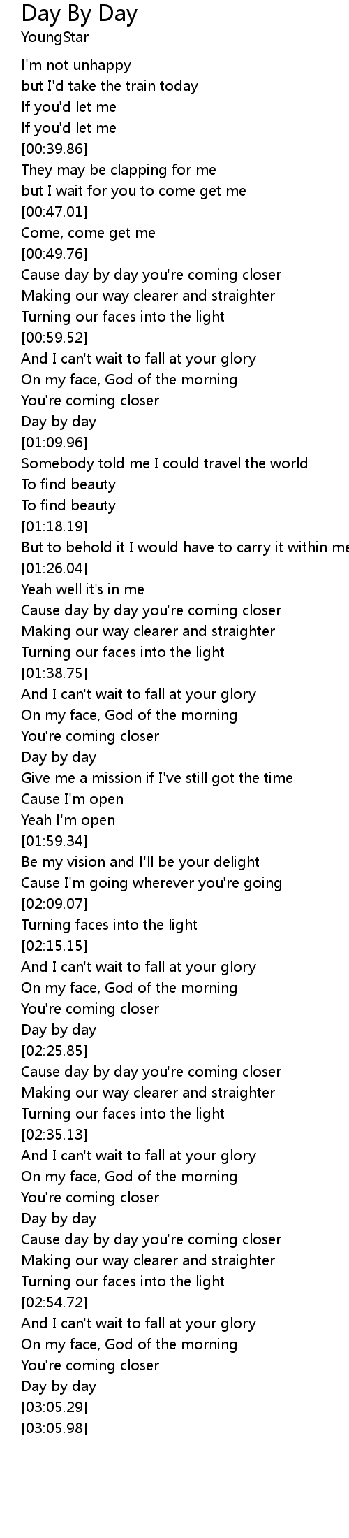 Cause day by day you're coming closer |