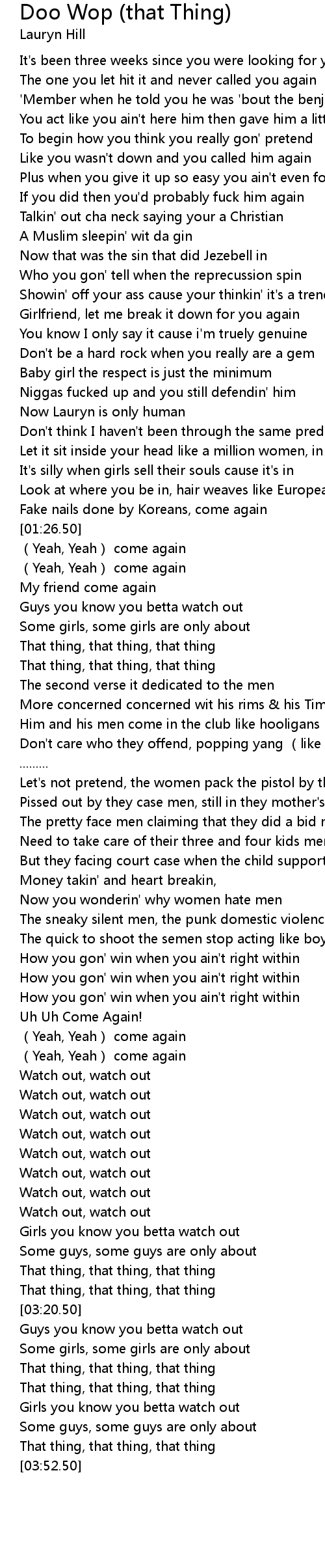 | [03:22.50] | Guys you know you betta watch out |