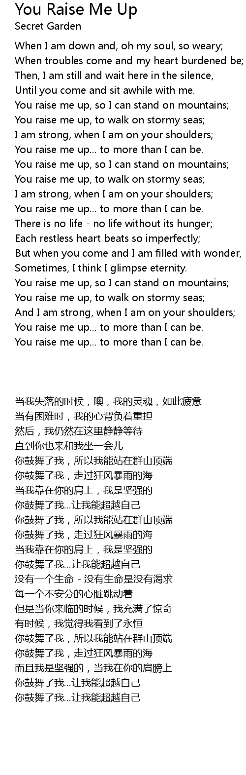 You raise me up... to more than I can be. |
