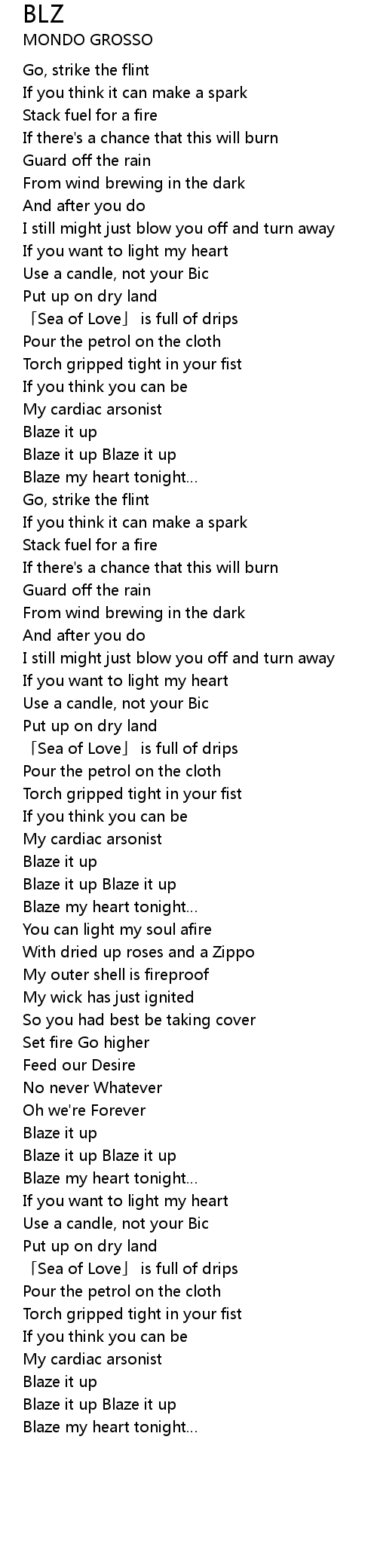 | Blaze my heart tonight… |