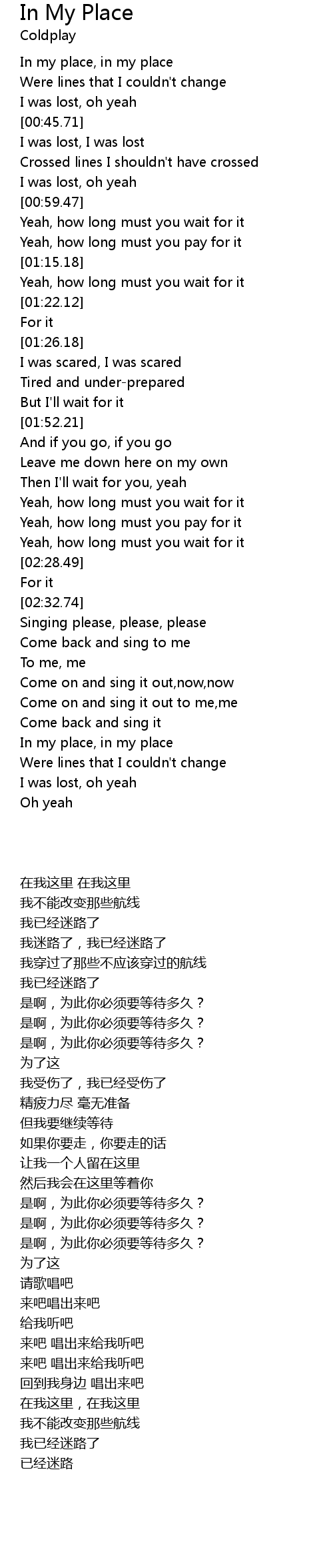 | [00:35.84] | In my place, in my place |