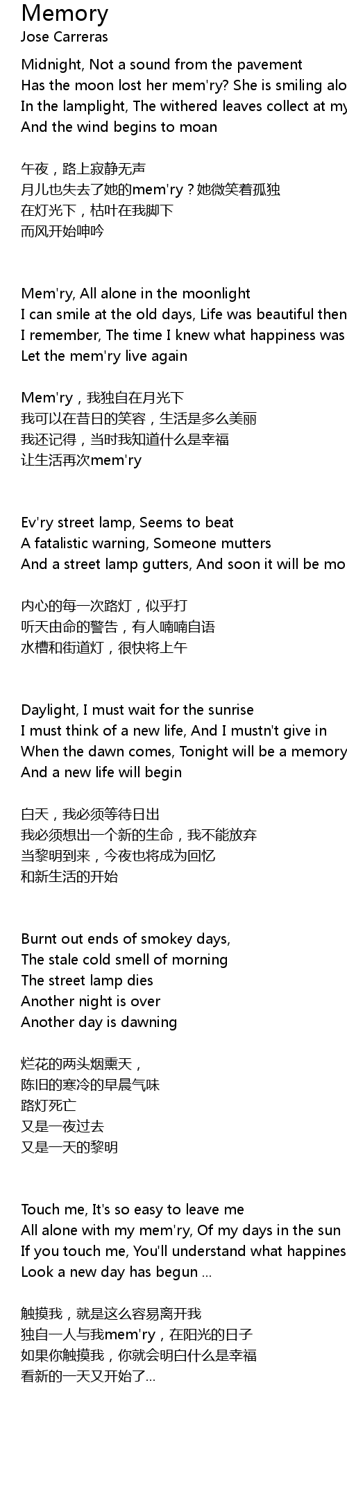| Mem' ry, All alone in the moonlight | |