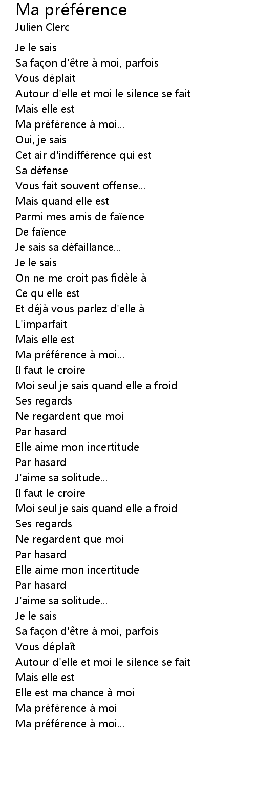| Ma préférence à moi | |
