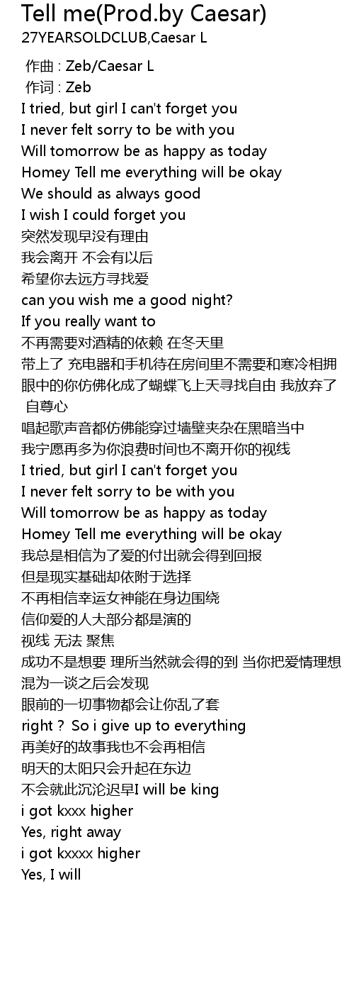 | [01:11.916] | I tried, but girl I can' t forget you |