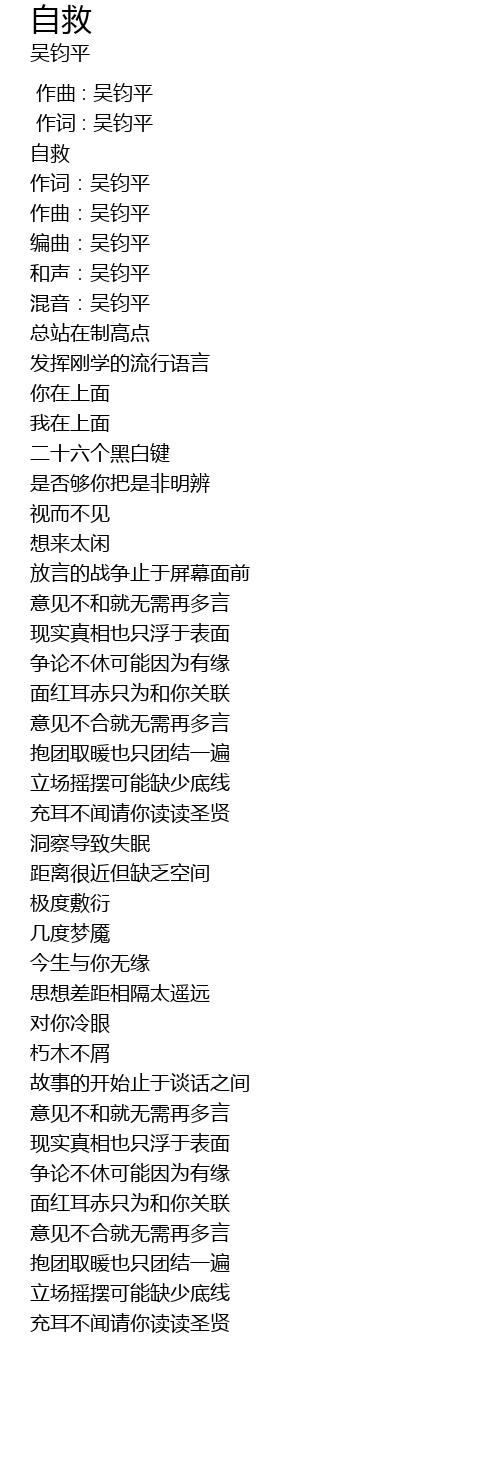 | [00:01.000] | 作词 : 吴钧平 |