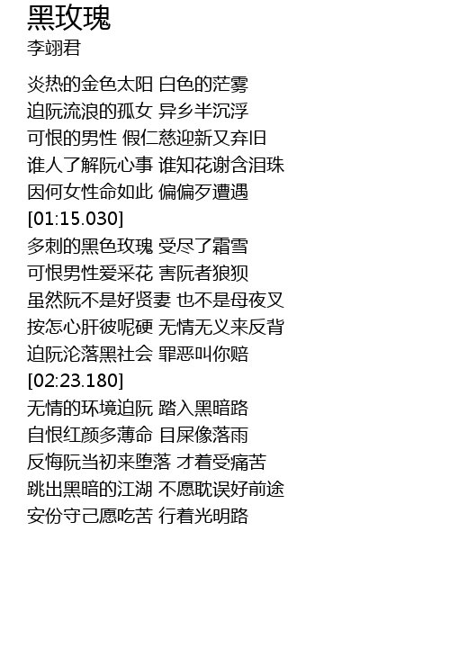 | [01:26.930] | 多刺的黑色玫瑰 受尽了霜雪 |