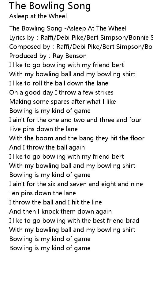 | [00:16.619] | With my bowling ball and my bowling shirt |