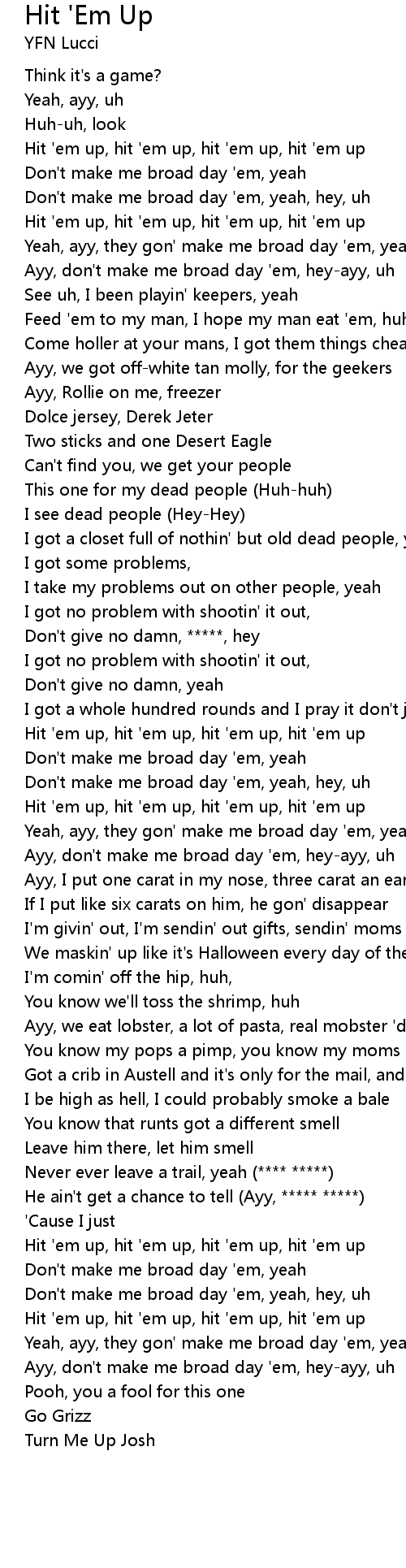 | [02:25.94] | Hit 'em up, hit 'em up, hit 'em up, hit 'em up |