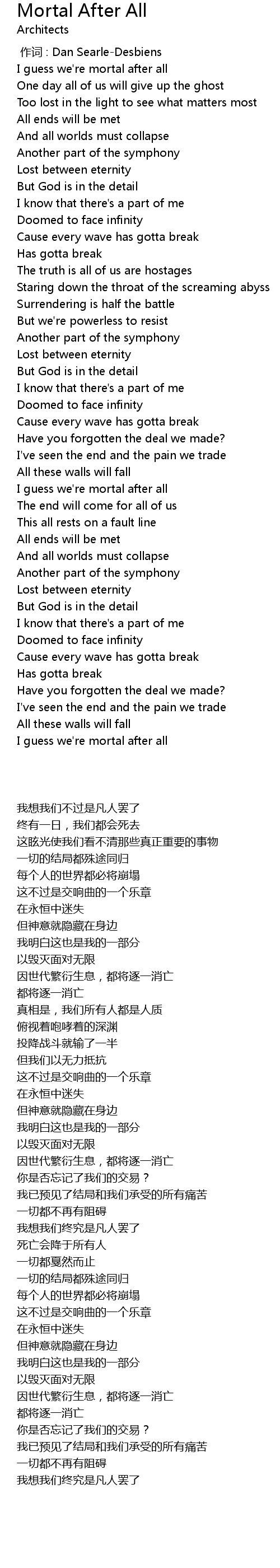 | Song | Mortal After All |