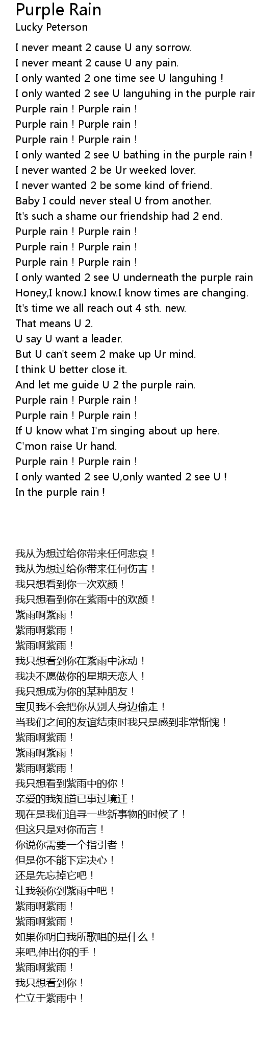 | [03:06.13] | And let me guide U 2 the purple rain. |