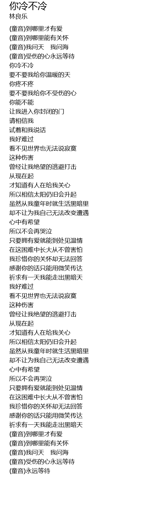 | [00:59.21] | nǐ lěng bù lěng |