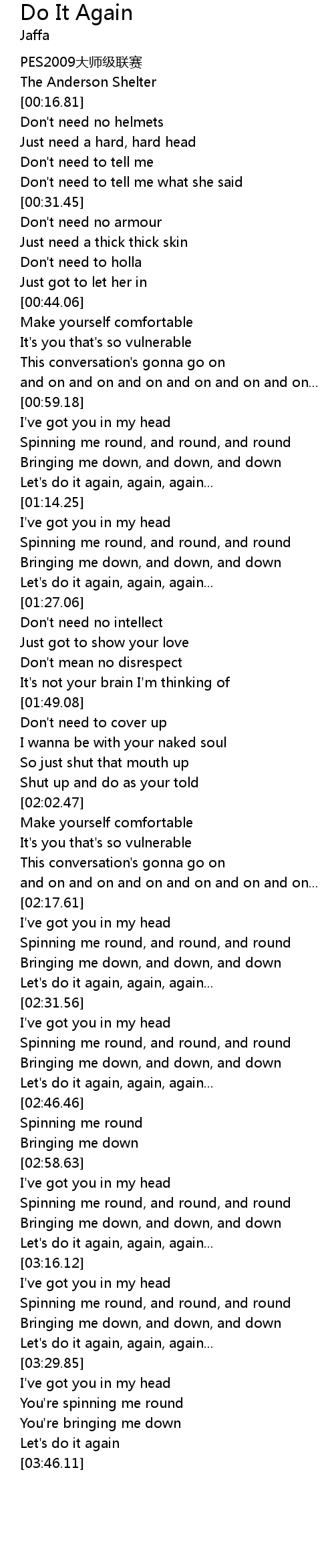 | [02:29.49] | Let's do it again, again, again... |