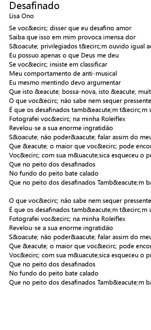| Se voc ecirc disser que eu desafino amor | |