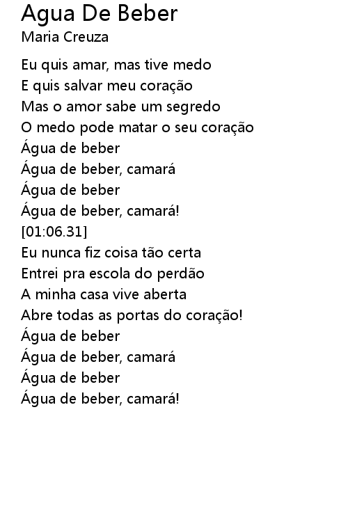 | [01:46.54] | Água de beber, camará |