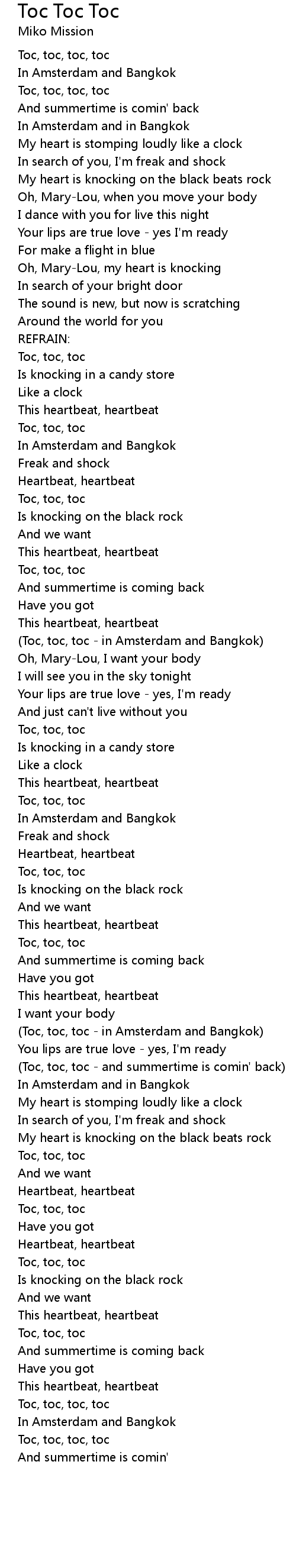 (Toc, toc, toc - in Amsterdam and Bangkok) |