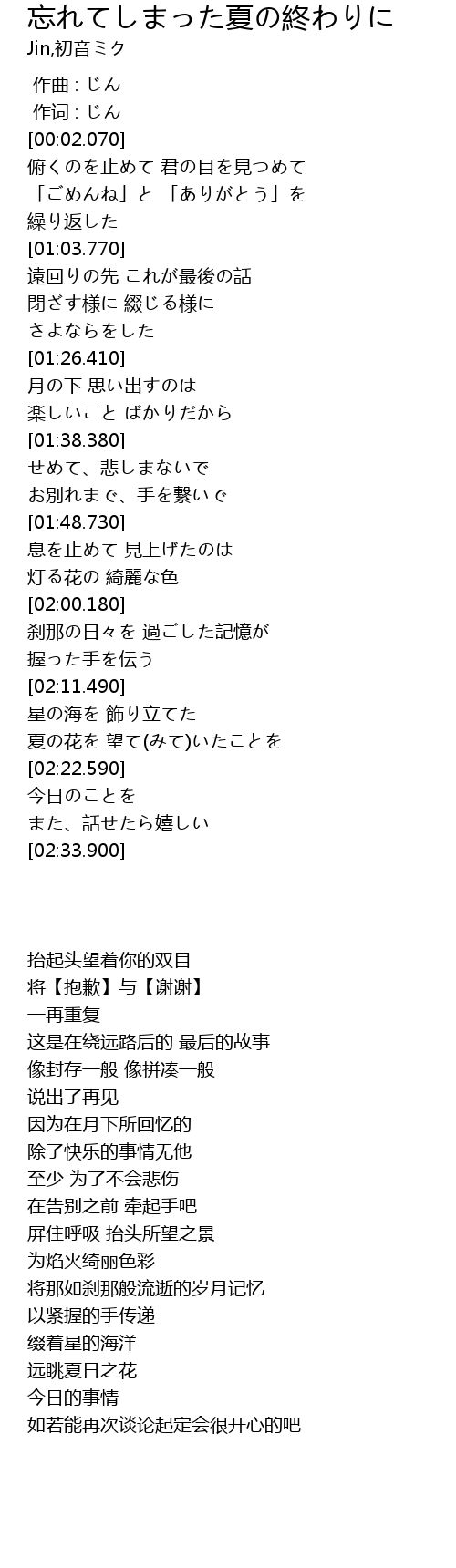 | [02:16.950] | 夏の花を 望て(みて)いたことを |