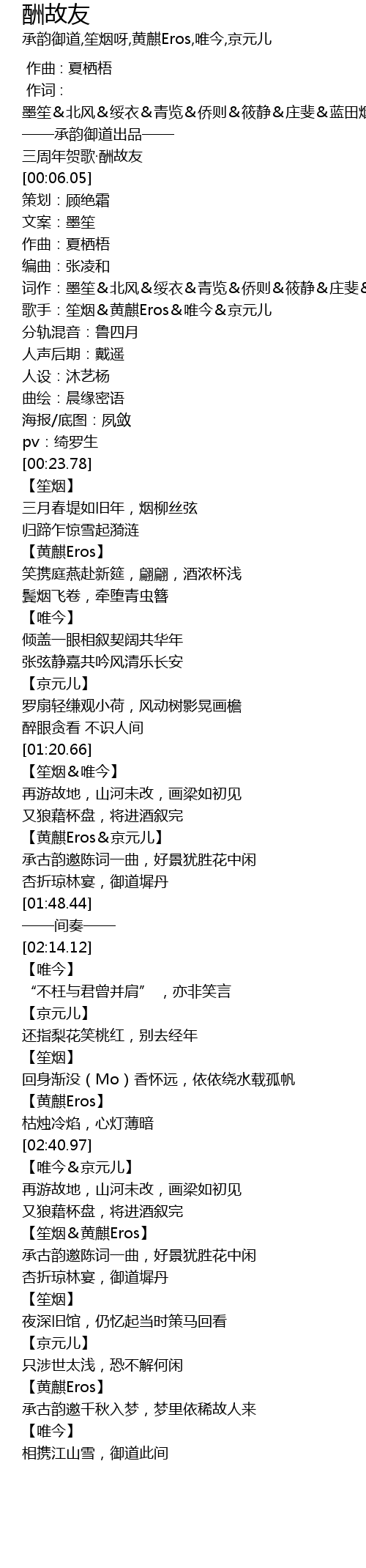 | [00:04.36] | 三周年贺歌·酬故友 |