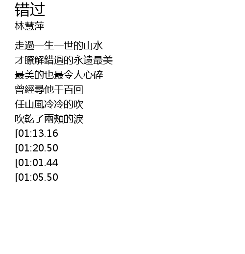 | [01:34.75][01:20.50][00:55.70] | 錯過了最美的那朵花蕊 |