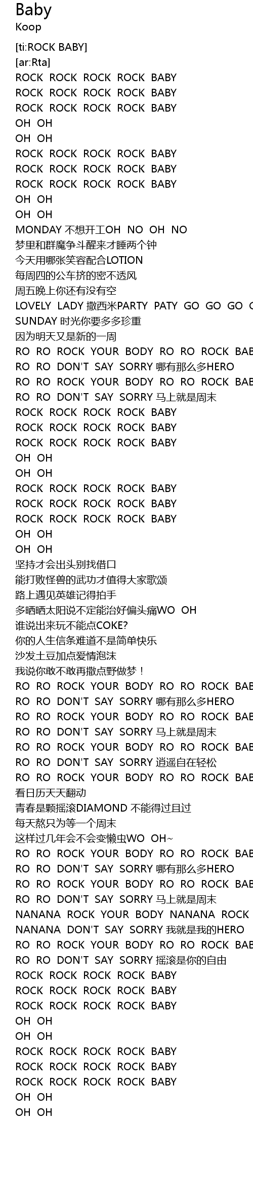 | [00:12.800] | ROCK ROCK ROCK ROCK BABY |