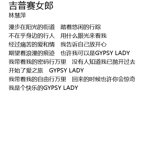 | 我是个快乐的GYPSY LADY |