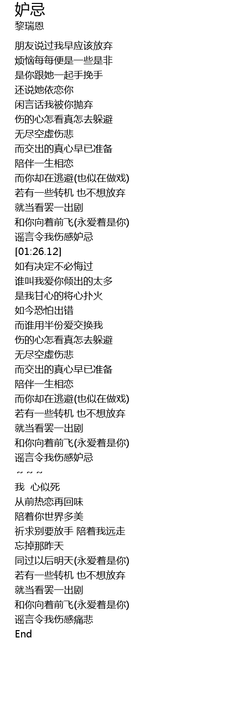 | [01:20.30] | 谣言令我伤感妒忌 |
