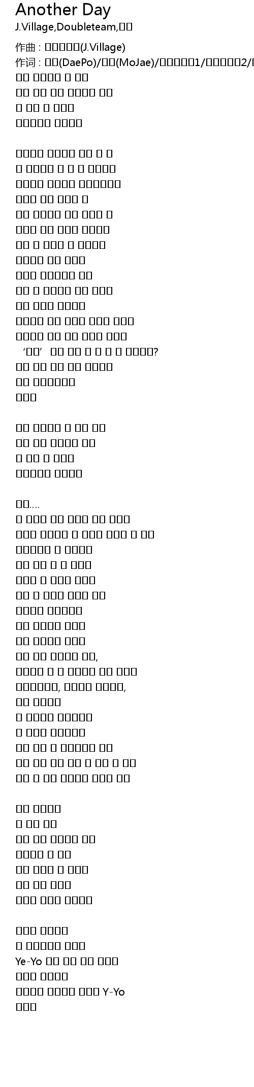| 作词 : 대포(DaePo)/모재(MoJae)/제이빌리지1/제이빌리지2/이준희 | |