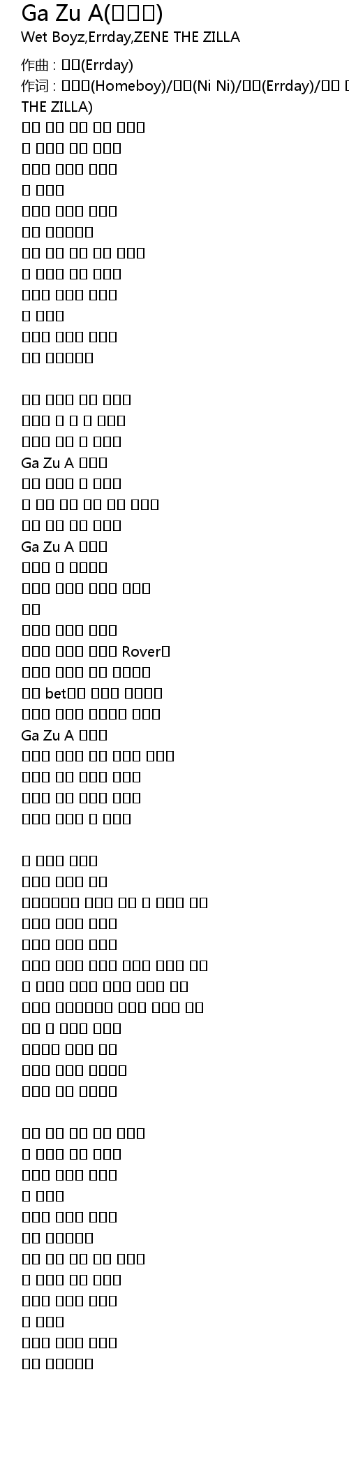 | 作词 : 홈보이(Homeboy)/니니(Ni Ni)/얼돼(Errday)/제네 더 질라(ZENE THE ZILLA) | |