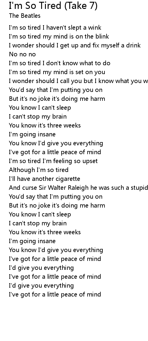I'm so tired my mind is on the blink |