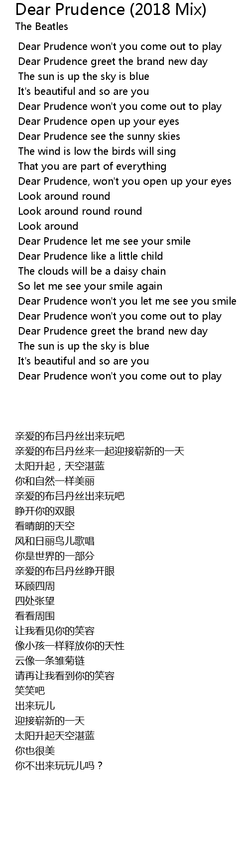 Dear Prudence let me see your smile |