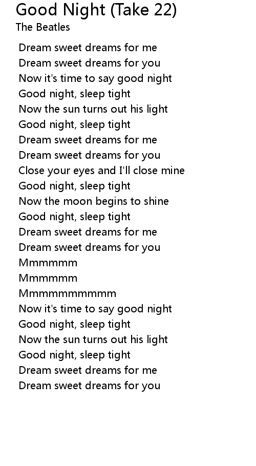 Good night, sleep tight |