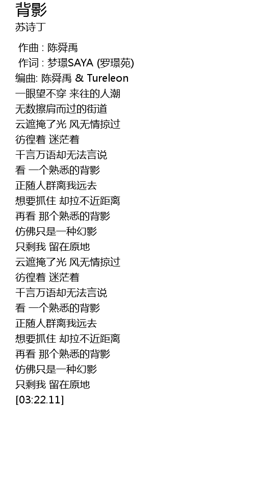 | [00:01.46] | 编曲: 陈舜禹 & Tureleon |