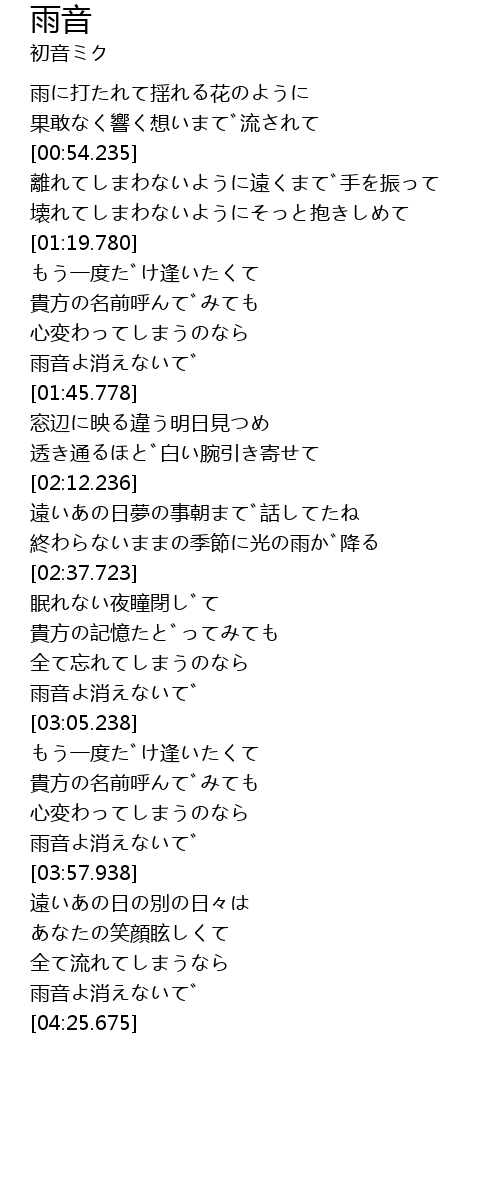 | [02:25.694] | 終わらないままの季節に光の雨が降る |
