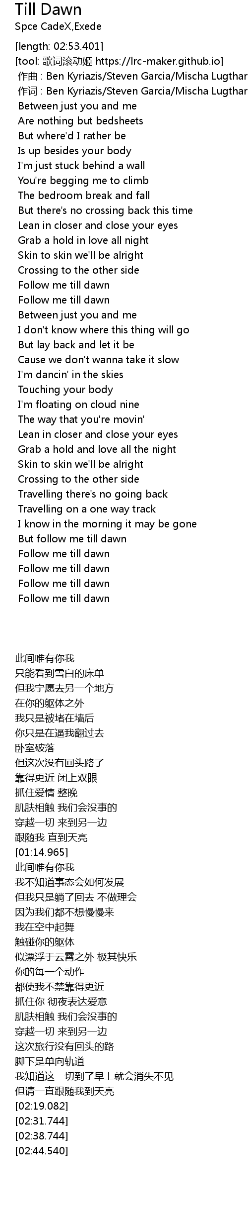 | [02:44.540] | Follow me till dawn |